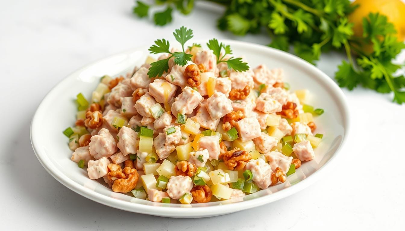 For fewer calories, use Greek yogurt instead of mayonnaise. Add more veggies and avoid high-calorie extras. Use fresh ingredients like celery and onions for a light salad.